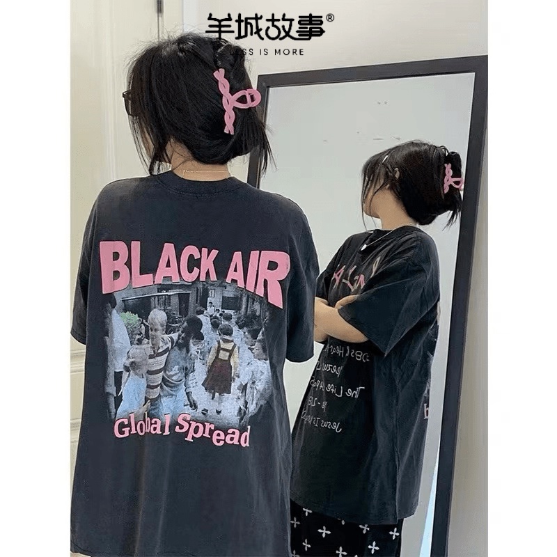 【羊城故事】100%純棉 t恤 美式復古上衣 短袖 短袖上衣 情侶裝 oversize 原宿風上衣 女生短袖t恤 衣服女