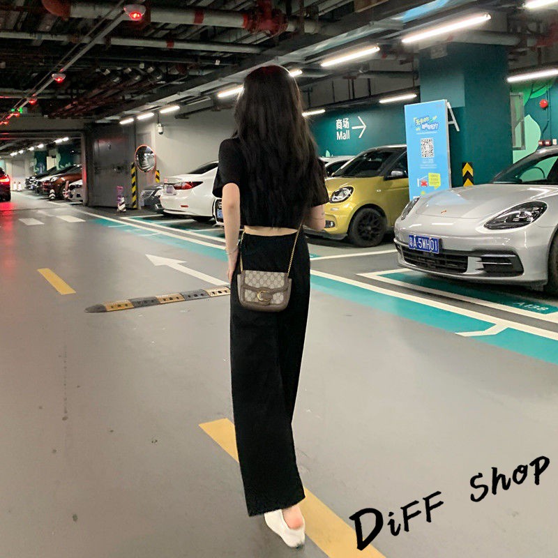 【DIFF】韓版氣質小個子顯瘦短版上衣+寬褲 兩件套裝 短袖上衣 短袖t恤 褲子 長褲 休閒褲【S120】