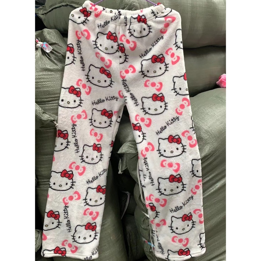 2024 Sanrio Hello Kitty coral fleece pajamas soft trousers women's casual home pants cute birthday gift