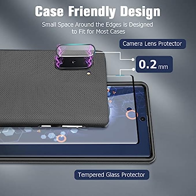 • 【Full Protective】: provide both Galaxy Note 10 Plus Tempered Glass screen protectors and Galaxy Note 10 Plus camera protectors, which will protect your phone from screen to camera all around. Offer full protection and double sercure.