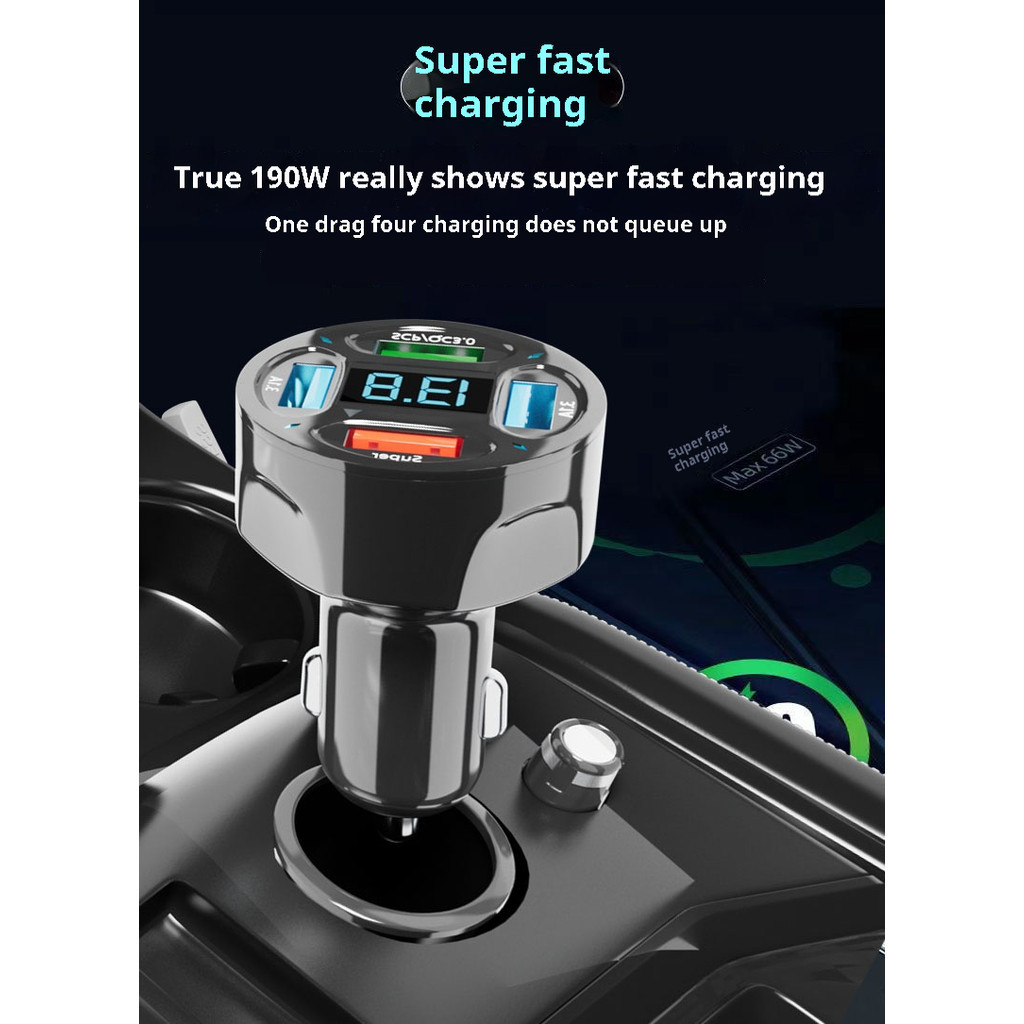 66W Car Charger 4USB Port Digital Display Super Fast Charging
