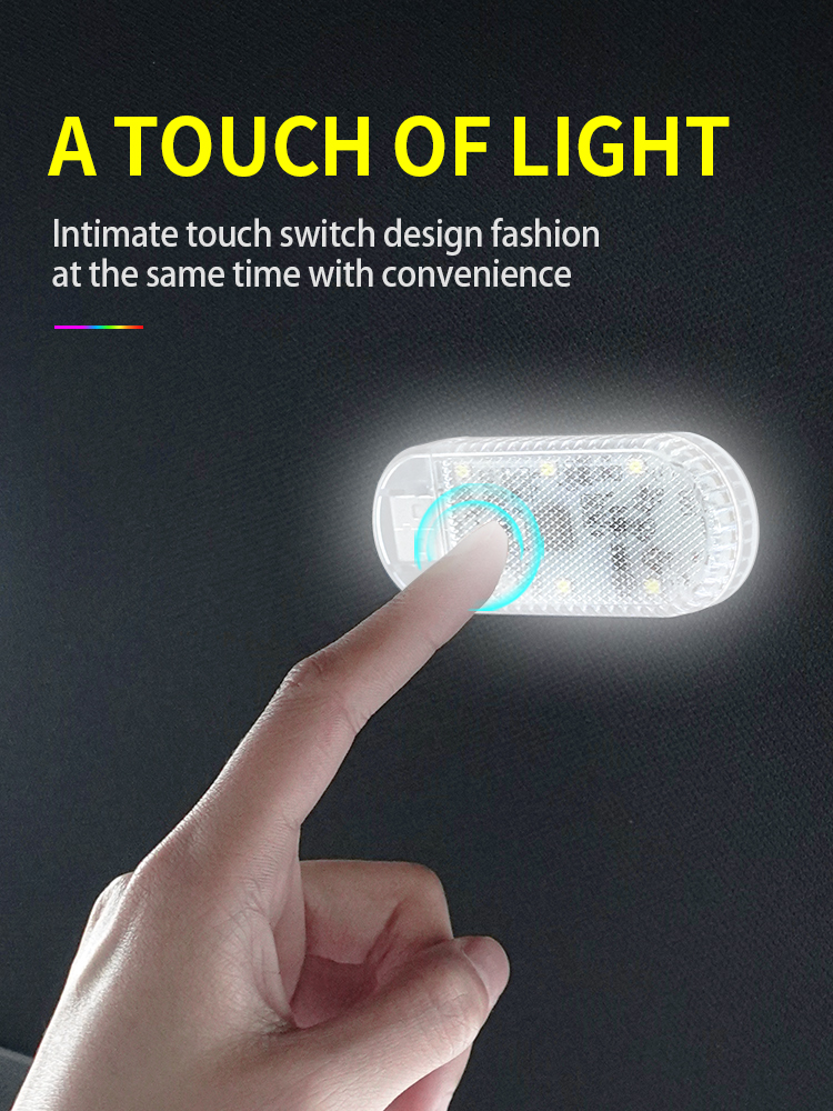 6LED Car Touch Lights Rechargeable Auto Interior Dome Light Roof Ceiling Reading Lamps Trunk USB Direct Charging Mini Lamp