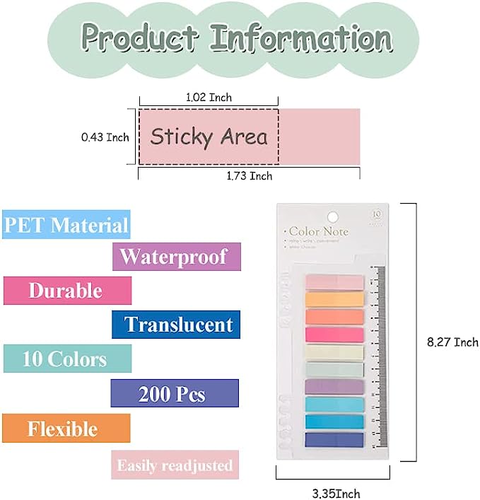 ✍[Sticky Index Tabs] 40 different colors of sticky index tabs,which are aesthetically pleasing.Sticky enough to stay in place but not too sticky that it will pick up the ink or damage the paper,easily readjusted if needed.