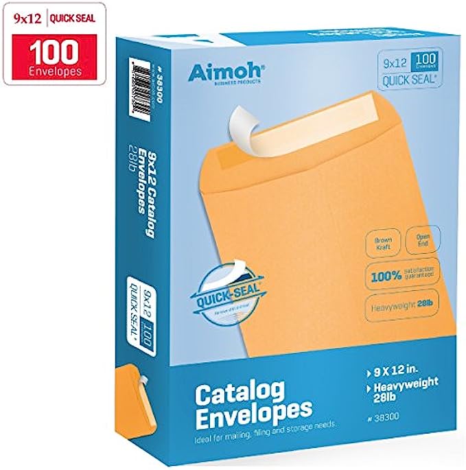 9x12 KRAFT ENVELOPES; Aimoh’s Catalog Envelopes combine tough 28lb golden kraft paper stock, strong self-sealing SELF-SEAL Closure for the best catalog envelopes on the market, perfect for large documents and all business correspondence