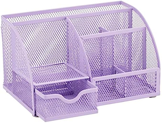 Annova Mesh Desk Organizer Office with 7 Compartments + Drawer/Desk Tidy Candy/Pen Holder/Multifunctional Organizer - Light Purple / Lavender