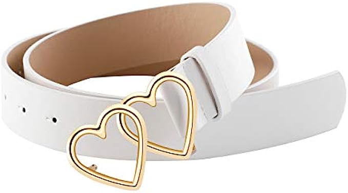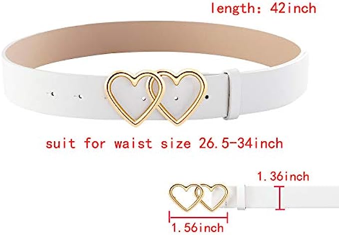 Ayliss Women Leather Waist Belt Fashion Casual Jeans Belt with Double Heart Shape Buckle Dress Pants