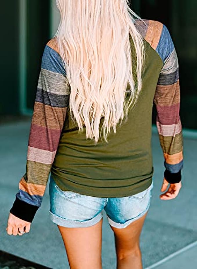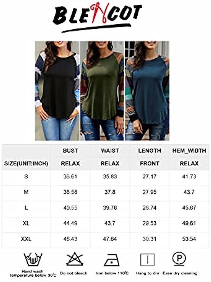 BLENCOT Women Lightweight Blouse Color Block Long Sleeve Loose Fit Tunics Shirts Tops