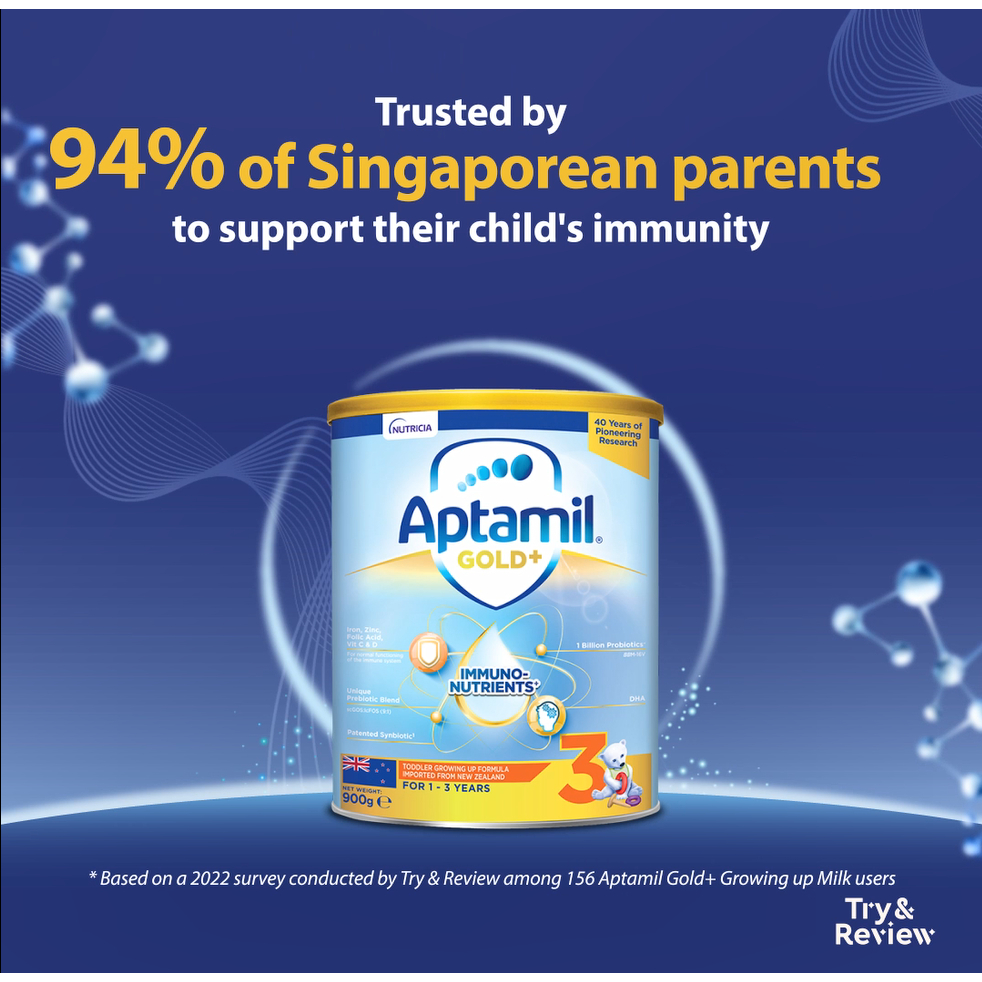 [Bundle of 4] Aptamil Gold+ Immuno-Nutrients Stage 3 Toddler Growing Up Formula Milk Powder 900g