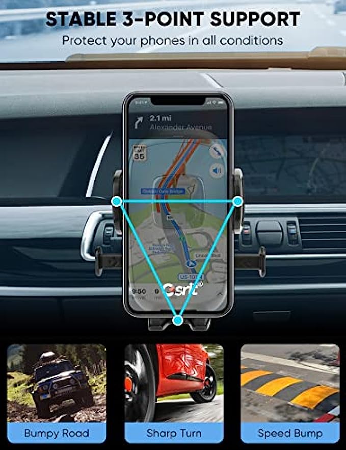 • ?One-hand Operation - Featuring an auto-lock clamp arms that adjusted well to fit any phone in just a single slide! Simply slip your device onto the holder with one hand and it will automatically lock for a strong, stable hold. Bringing you the easiest operation and safest, convenient driving.