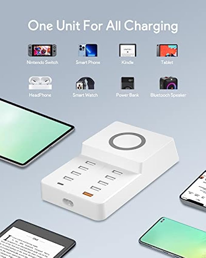 Charging Station for Multiple Devices - 10 Port Multi USB/PD/QC Charger Station with Wireless Charge Compatible with Cell Phone Tablets and More Electronics