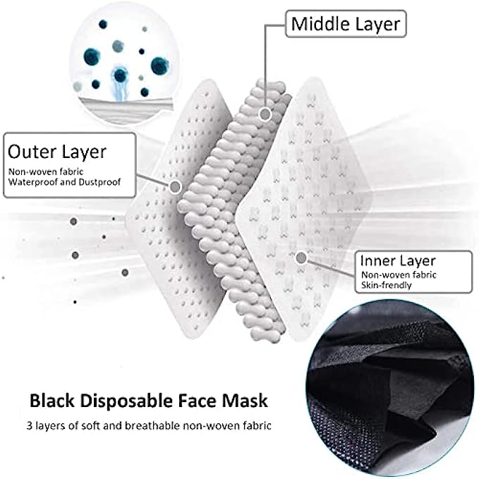 Black Masks - To make sure that you’re adequately protected, you need to choose the best disposable face mask. A good mask should fit snugly across your face covering your nose and mouth and stretched over your chin.