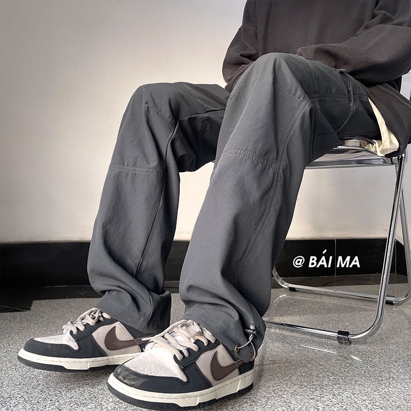 Korean Version Trendy Work Pants Preppy Style Design Contrast Color Overalls Men's Leggings Straight-Leg Pants Sports Casual Pants All-Match Thin Style Ankle-Length Pants Spring