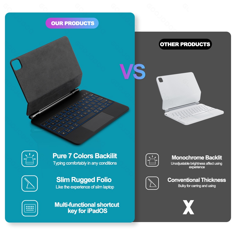 Goojodoq for ipad keyboard with Case for Air 4 Air5 /Pro 11 2018-2021 /Gen10 10.9 2022/12.9 2018-2021/floating cantilever cover wireless bluetooth for ipad keyboard