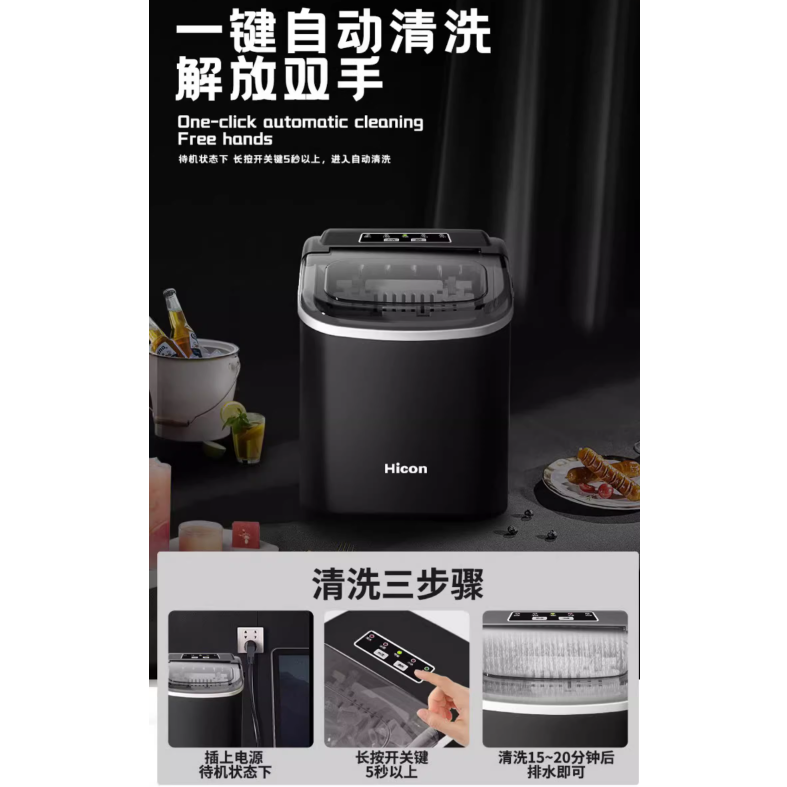 Hicon Ice Maker Fully automatic ice cube making machine Small Milk Tea Shop Commercial 15kg Household Mini Ice machine Automatic cleaning Dormitory Round Cube Makinging Machine intelligence Six minute