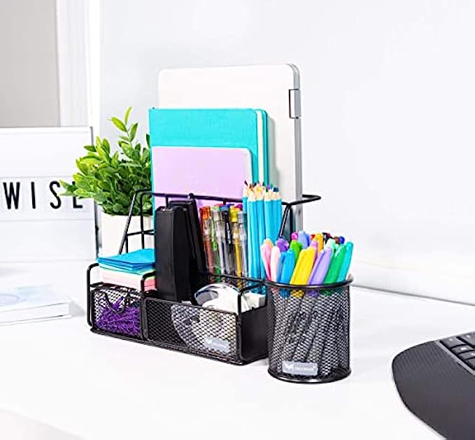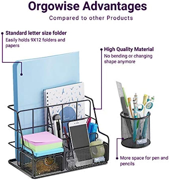 Orgowise Mesh Desk Organizers and Accessories Set. Black Desktop Organizer with Pen Holder and Paper File Organizer for Real Desk Organization. Cute Office Supplies Storage for Kids and Adults