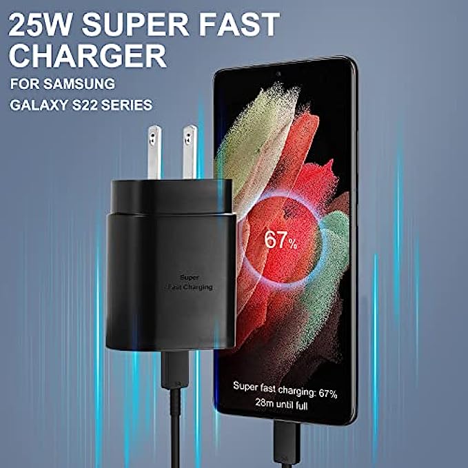 Super Fast Charger Type C, 25W USB C Wall Charger Fast Charging for Samsung Galaxy S22/S22 Ultra/S22+/S21/S21 Ultra/S21+/S20/S20 Ultra/Note 20 Ultra/Note 10/Z Fold 3 with 10FT C Charger Cable 2Pack