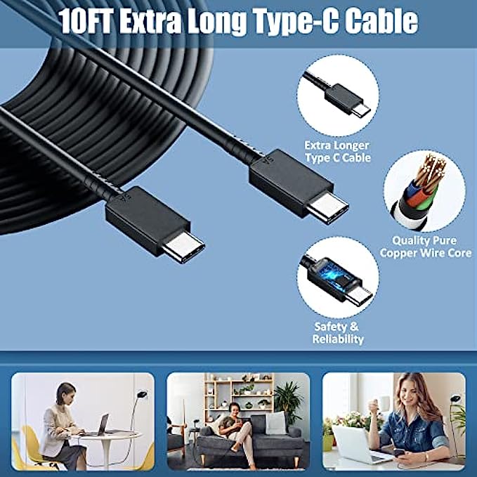 • 10FT C Charger Cable Fast Charging: The 25W super fast type c charger is equipped with extra longer 10FT Type C to C cable, offering a user-friendly reversible design and longer charging distance, fast charging and up to 480 Mbps data transfer speed. The power output up to 3 Amp and 100-240 volt input of this 2pack Samsung super fast chargers can charge two devices simultaneously, ideal for worldwide travel with your partner!