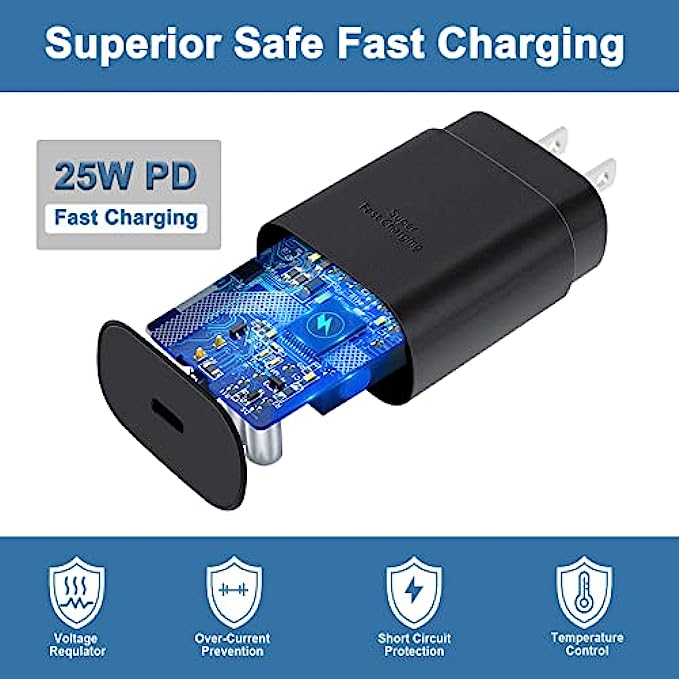 • Safety Assurance: The Samsung galaxy S22 super fast charger is built in intelligent chips, which can protect your devices against damage caused by short circuit, over-current, over-voltage, over-heating, and over-charging issues. Automatically stops charging when battery capacity is full to ensure your device safety and longevity.