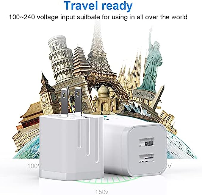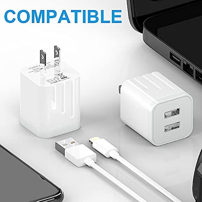 USB Wall Charger, [Apple MFi Certified] iPhone Charger Lightning Cable 6FT(4PACK) Fast Charging Data Sync Cords Dual Port USB Plug Compatible with iPhone 12/mini/Pro/Max/11/Pro/Xs/XR/X/8/7/Plus