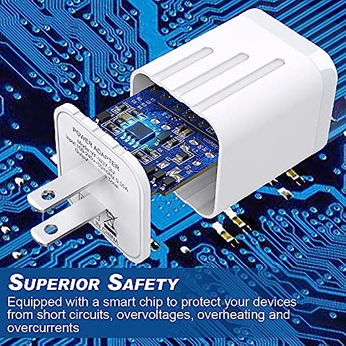 • Charger with chip inside is designed to identify fully charging with safety usage,Protection against over charging,over currents, and over heating, It uses anti-fire material to ensure 100% safe for family members.