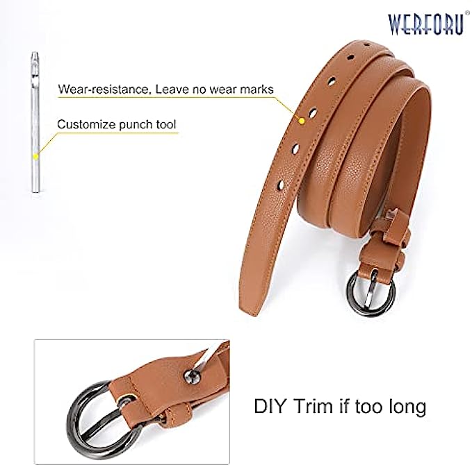 DESIGN- Solid pin buckle skinny thin waist belt in black brown coffee and white colors to match your different outfits and give you the classic look.One order for two different color belts.
