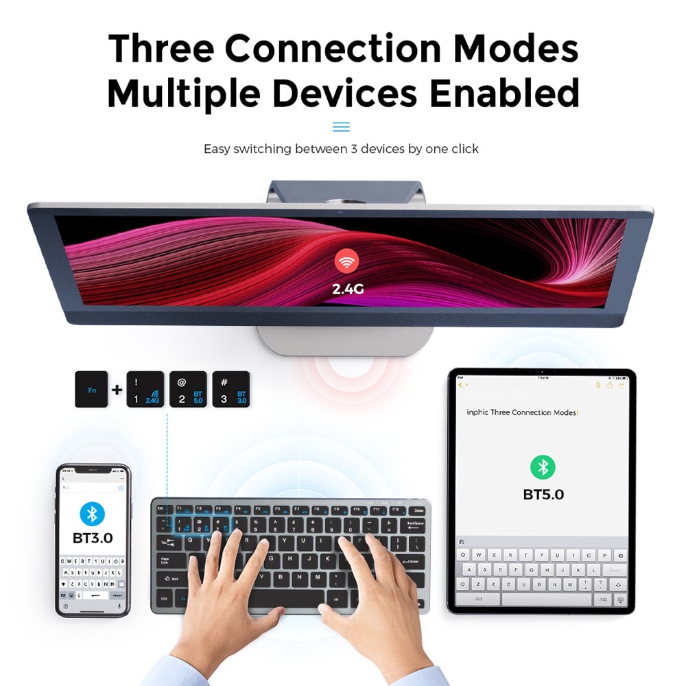 Bluetooth Wireless Keyboard Rechargeable Compact Slim 3 Modes Wireless Mouse