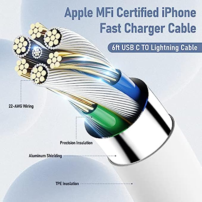 • 【MFi Certified Cable】Each cable contains a unique, verified serial number and an authorization chip issued by Apple to ensure 100% compatibility with any Lightning device.USB C to Lightning Cord fully supports the iOS version and all future updates.