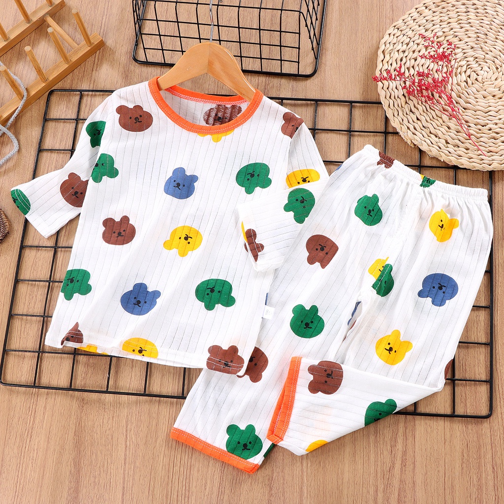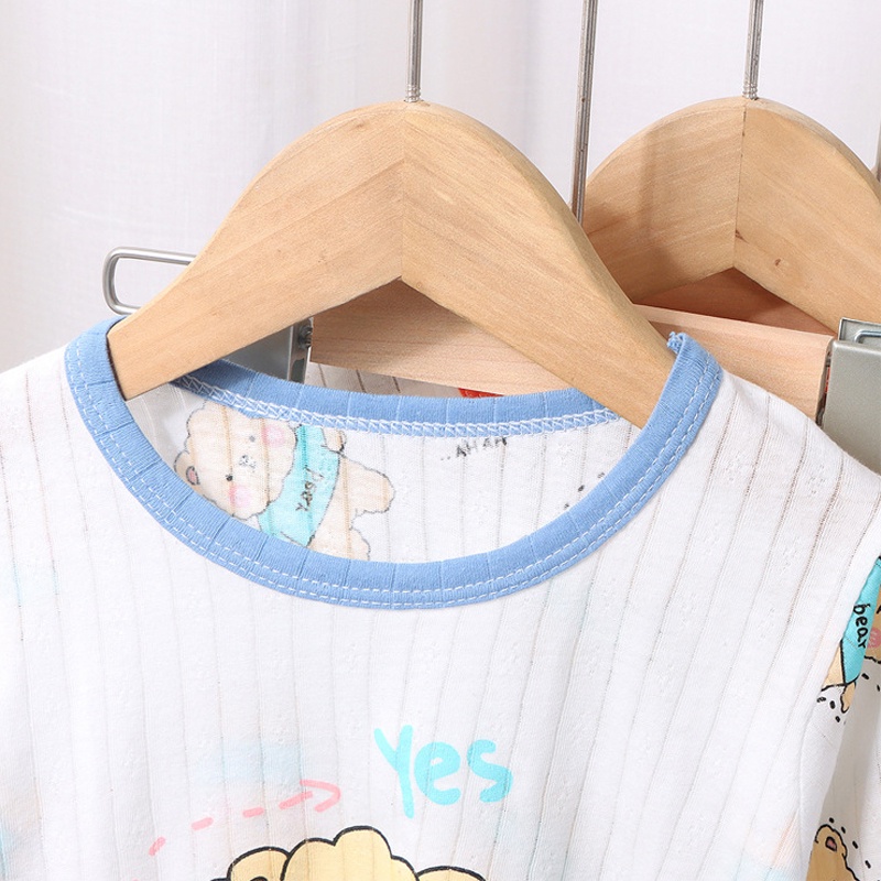 Kids Mesh Sleepwear 1-7 Years Long Sleeves Baby Breathable Clothes Pajamas Boys Clothing Set Girls Nightwear Short Sleeve 2Pcs Set