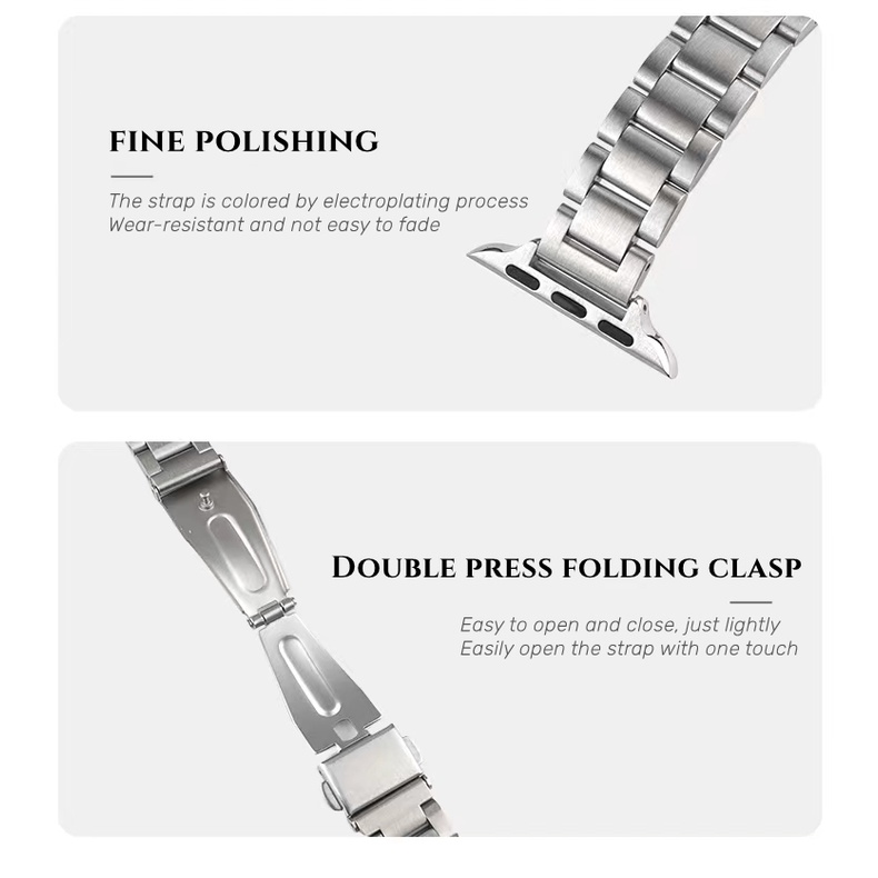 Material Quality:Stainless steel hopefully won’t get scratched easily Colour:Silver Super worth that I got it for less than $10!! Compared to the $500 Apple one :,) The adjustment tool is provided so it was easy to adjust the sizing! Strap was wrapped nicely and one week delivery duration was relatively okay too!