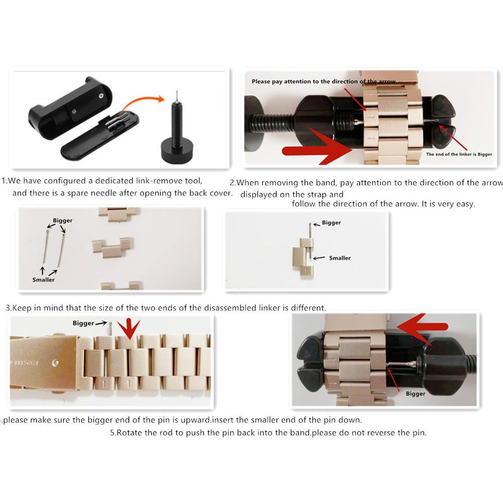 Received items within a week from placing my order. Enjoy the thin strap. Seller provided 2 of the same tools to adjust the length of strap, which can be easily done. Color comparison of starlight and silver, really liking the warmth in starlight