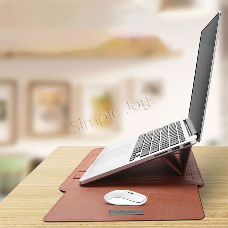 Laptop Cover Sleeve Foldable Stand PU Leather Case with Mouse Pad