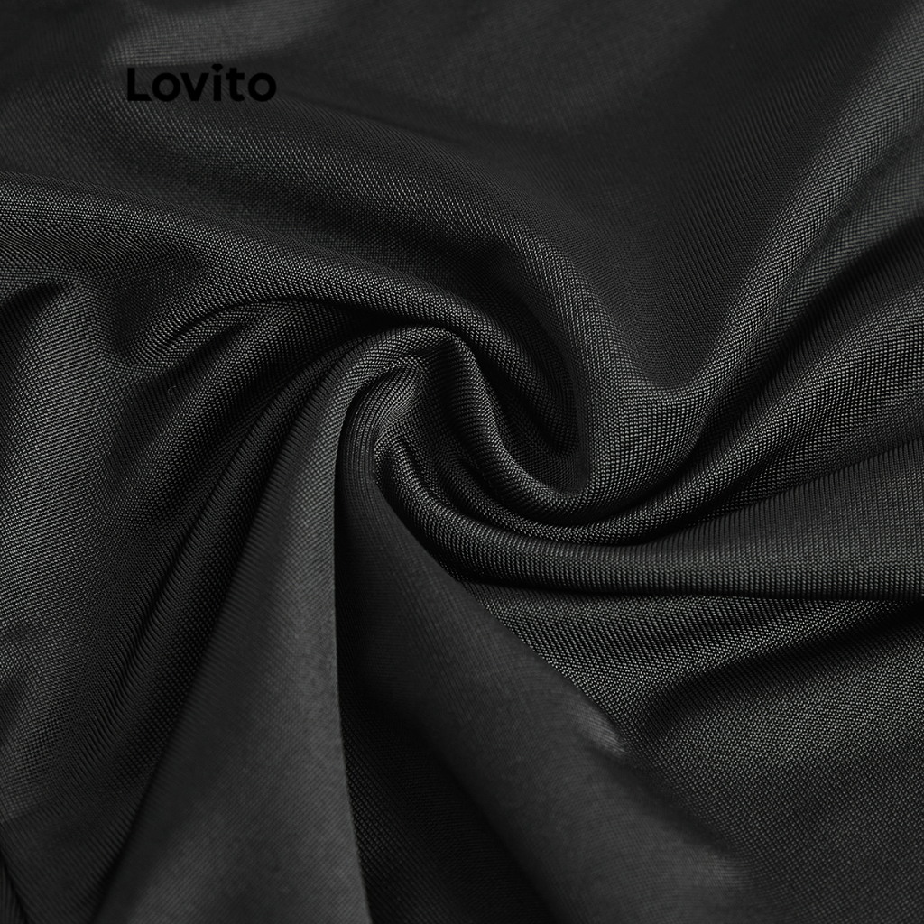 Lovito Casual Ditsy Floral Lace Up Dress for Women L68ED190 (Black)