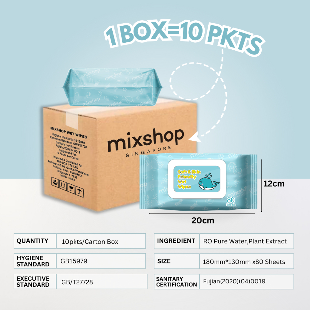 mixshop Baby Wet Wipes, 10 Pkt per Carton Total 800 Sheets, SG ready stock