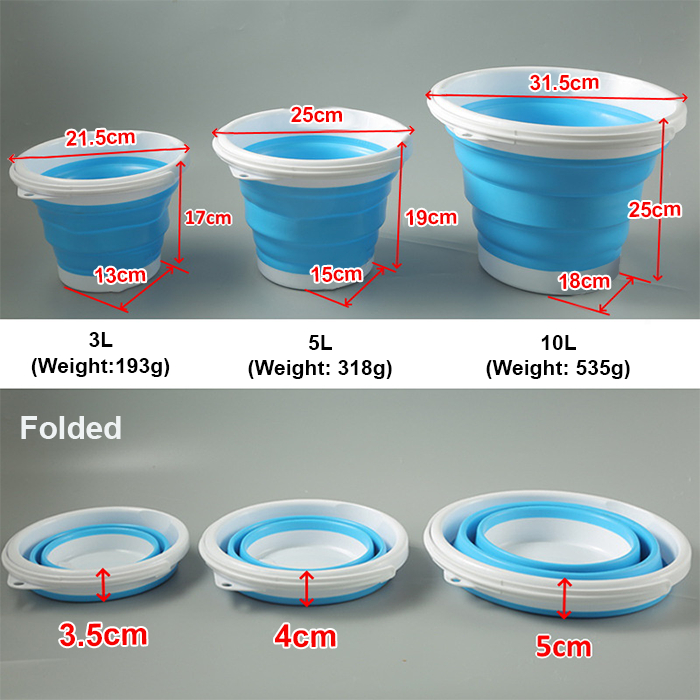 Suitability:good Performance:good Quality:good Delivery of the foldable pail bucket was fast. I choose the small size in grey and white to use for soaking wiping cloth. The plastic is thick and sturdy. A good buy.
