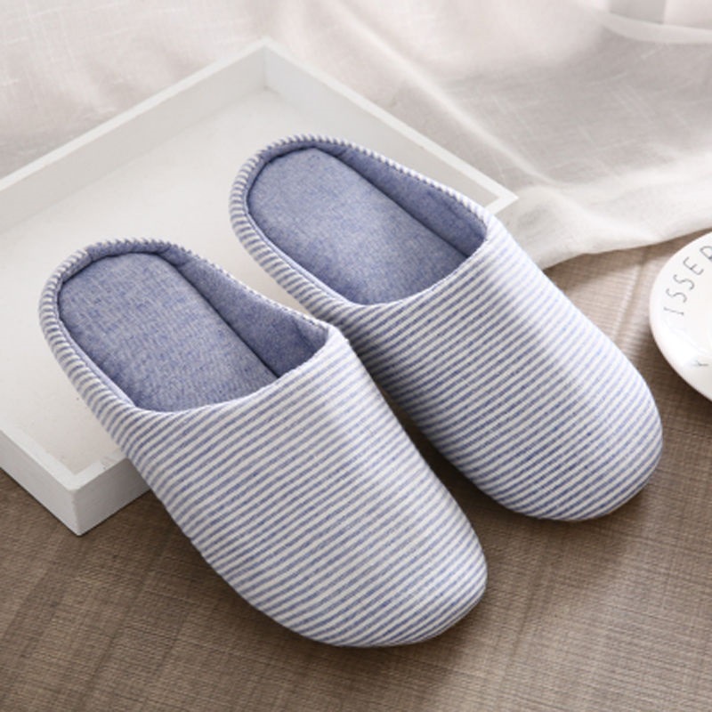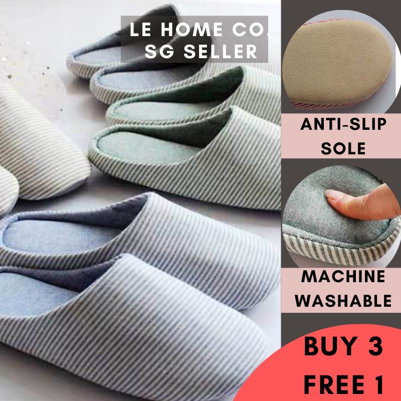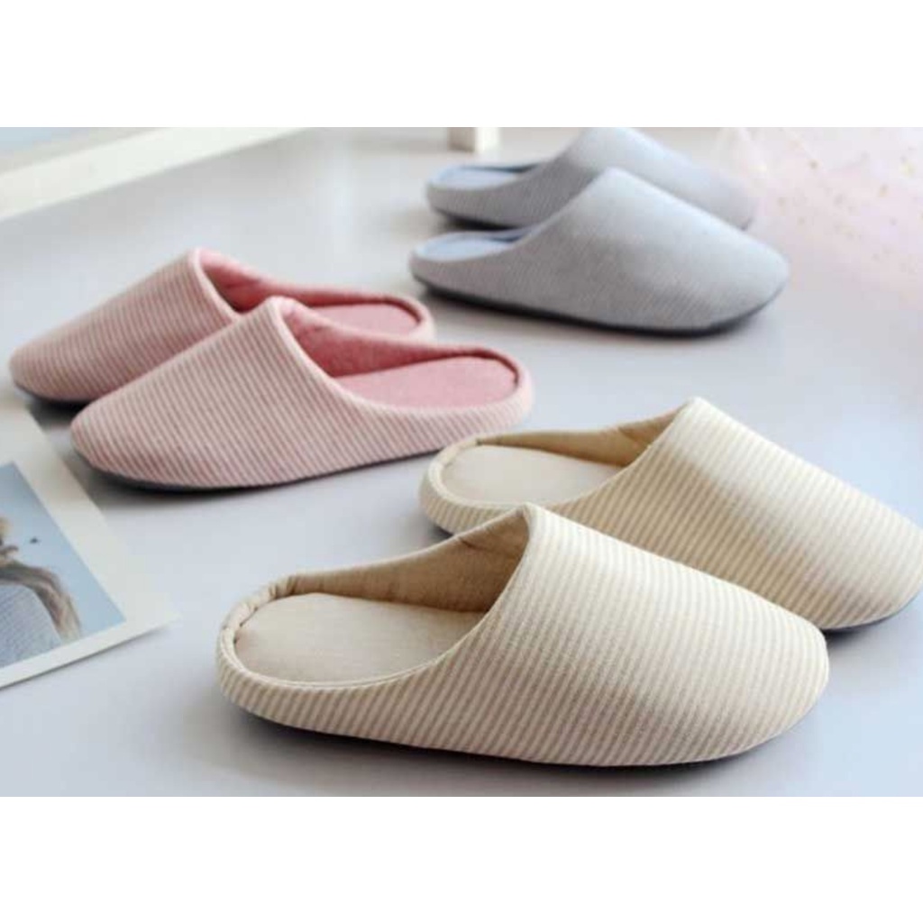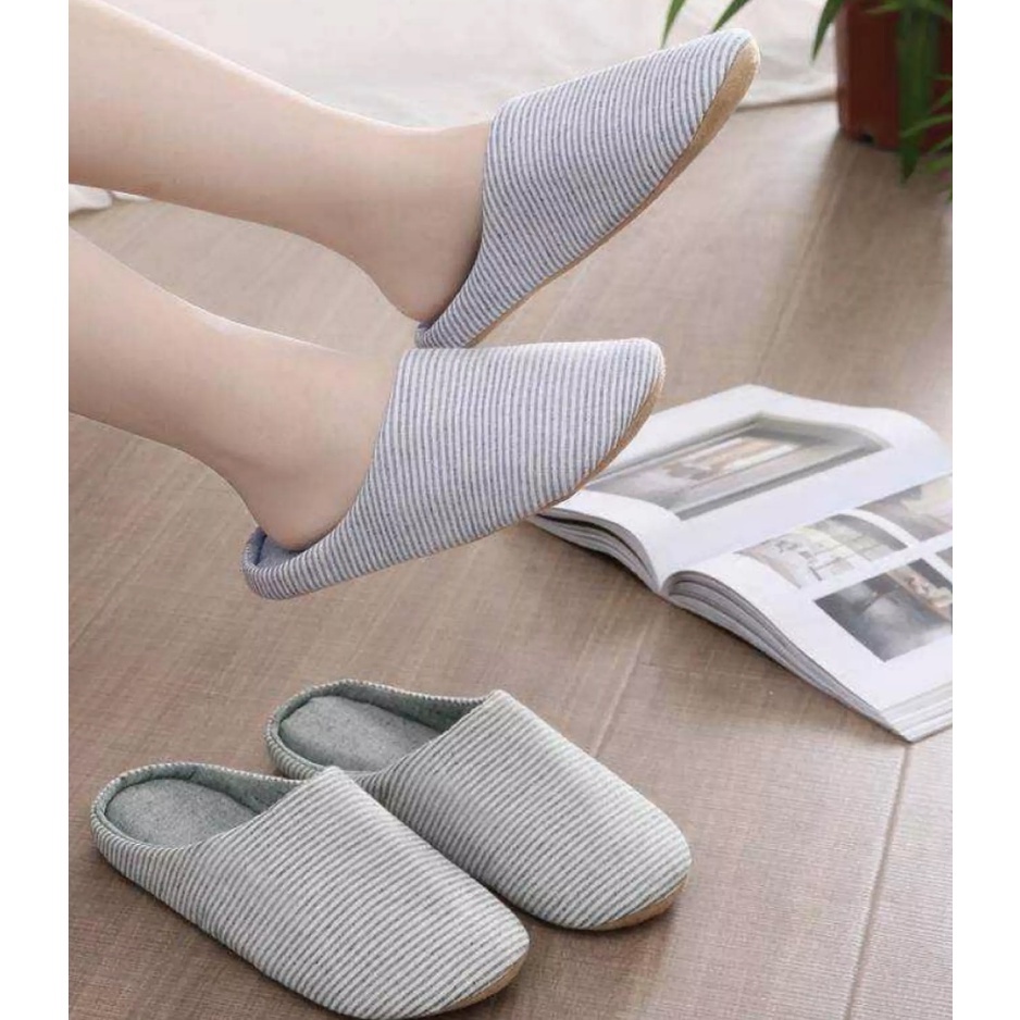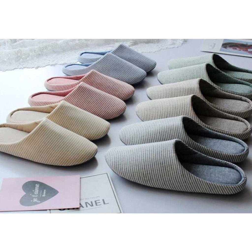 [SG INSTOCK] Comfy Striped Bedroom Slippers for Men or Women /Couple Slip On/Closed Toe/Japan Style