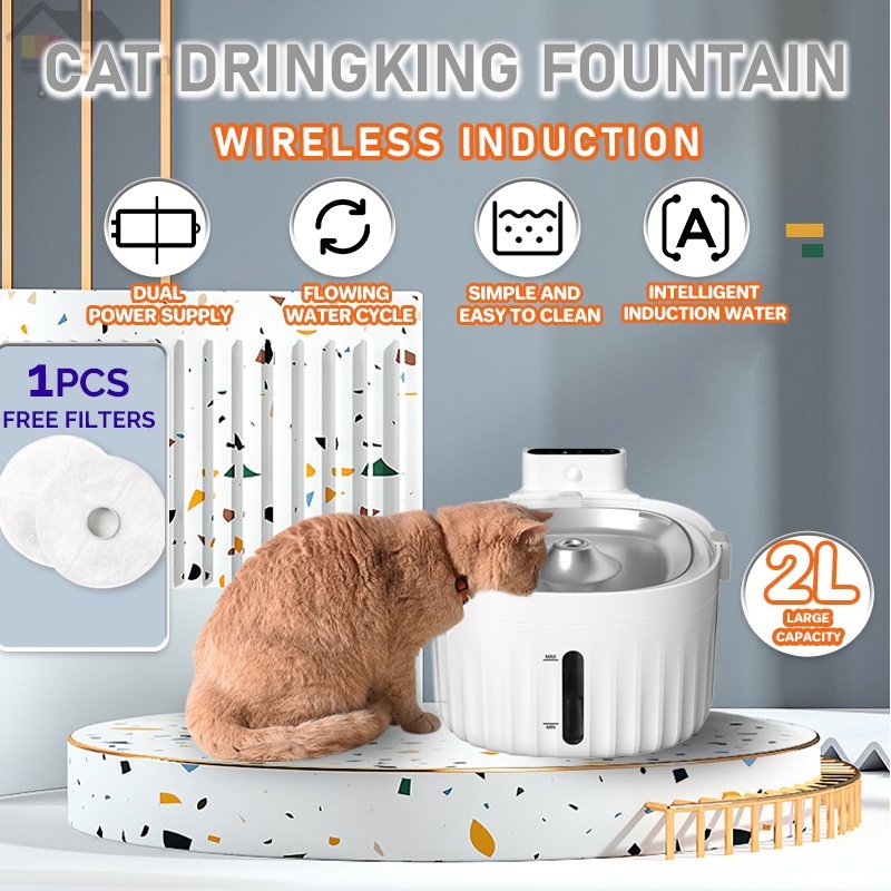 [SG Stock] 2L Cat Water Fountain 5000mAh Automatic Pet Water Fountain Dispenser Wireless Sensor Water Feeder Cat Drinking