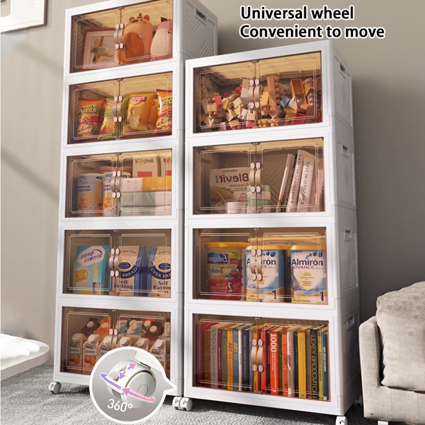 【SG Stock】Folding Storage Box Cupboards Cabinets Transparent Double Door Foldable Home Clothes Snacks Storage Cabinet